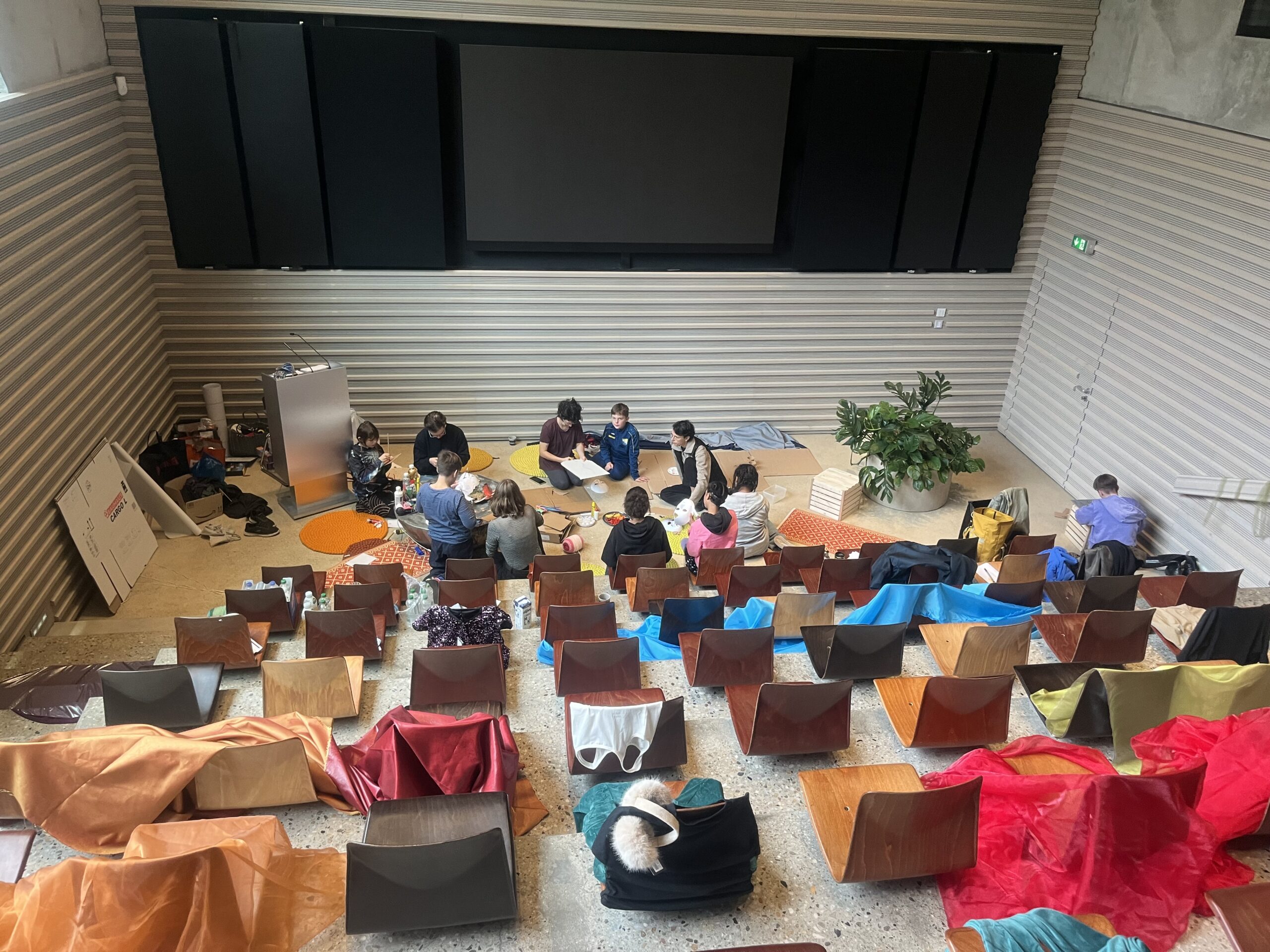 Im Theaterprojekt konnten die Kinder die Erfahrung machen, über Abläufe und Prozesse selbst zu entscheiden. Das Projekt war wie ein leerer Bühnenraum, den sie mit ihren Ideen und Perspektiven füllten. Im Verlauf eines Jahres trafen sich die Kinder wöchentlich und nahmen an drei Ferienwerkstätten teil. In einem weiteren kreativen Teil des Projekts führten die Kinder selbst Straßeninterviews und interviewten sich selbst, um ihre Sichtweisen direkt in die Öffentlichkeit zu tragen und verschiedene Perspektiven zu sammeln. Insgesamt entstanden Filme, eine Zine-Publikation, Soundarbeiten, Comics sowie eine Performance, die am 02.11.2024 im Rahmen eines Pflegefamilientags in der Spore Initiative präsentiert wurden.